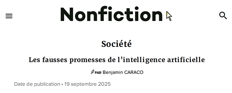 وإذا كان الذكاء الاصطناعي يتغذّى على المعرفة البشرية؛ فإنه كلما أنتج محتوى أكثر، تغذّى على نفسه وأصبح أقل قدرة على الابتكار، ناهيك عن إنشاء أعمال فنية أصلية قادرة على إثارة المشاعر. في الواقع، يقدم الذكاء الاصطناعي إبداعات متوسطة ومحتملة وغير فريدة من نوعها عندما يعتمد الابتكار على التفكك. وتُشكِّل برامج المحادثة مخاطر لا يستهان بها على أُلْفَتِنا الاجتماعية وصحتنا العقلية، وذلك بتعزيز نرجسيتنا واعتمادنا عليها. تولّد الشبكات "غير الاجتماعية" من جانبها، الكراهية والامتثال من خلال خوارزمياتها، وتعمل هذه الشبكات وفقاً لمعايير كمية حيث يتم التلاعب بها بانتظام من قبل مبتكريها من أجل الربح أو وفقاً لأجندة سياسية.