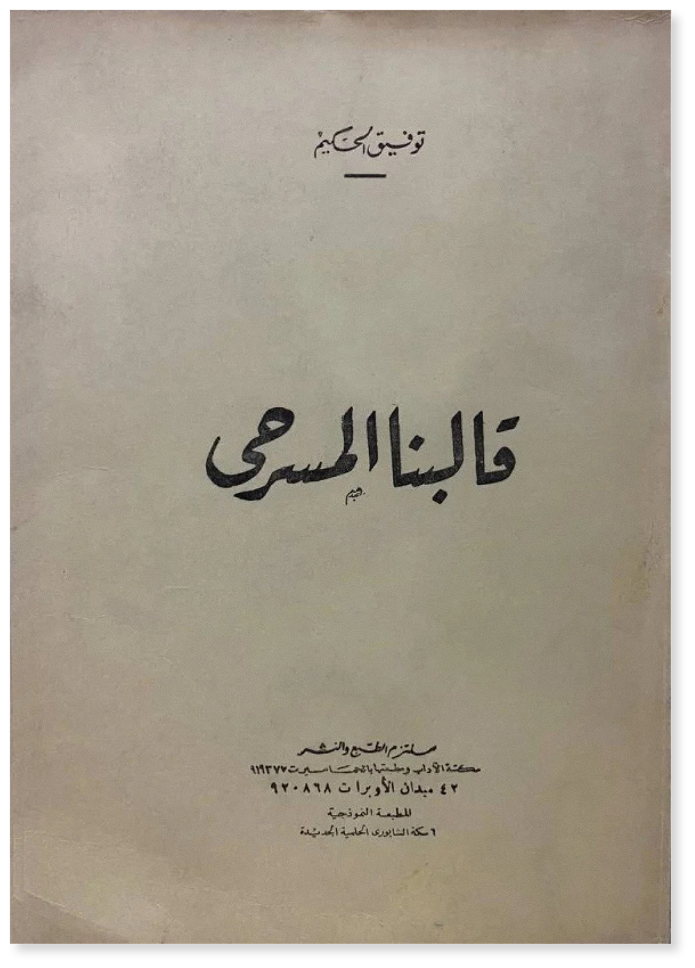وفي كتابه الشهير "قالبنا المسرحي"، قدّم رؤية تقوم على المزاوجة بين التراث القصصي العربي -وخاصة ألف ليلة وليلة- وبين البناء الدرامي الغربي. لم يكن الحكيم داعية قطيعة مع المسرح الغربي، بل سعى إلى «توطينه» ثقافياً.