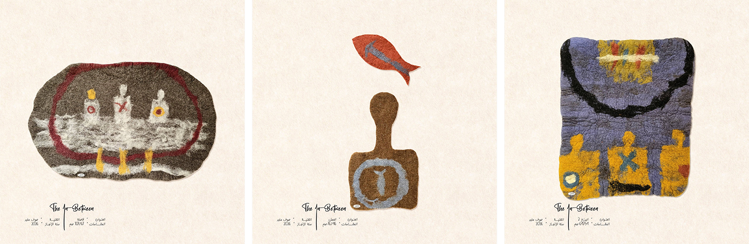 يرتبط هذا النظام الدلالي المتحرّك ارتباطا فنيا بطبيعة المادة نفسها. حيث إن الصوف، بوصفه خامة ليفية عضوية، يفرض منطقا بصريا قائما على التداخل، والامتصاص، والتدرّج، مما يجعل العلامة جزءا من النسيج بدل أن تكون مضافة إليه. فهي تتكوّن داخل السطح/المادة ولا تُرسَم فوقه، وهو ما يمنحها وضعا أنطولوجيا خاصا بوصفها أثرا ماديا قبل أن تكون دلالة بصرية. يعيد هذا التداخل بين العلامة والمادة التفكير في مفهوم الصورة داخل الفن المعاصر، حيث تتراجع مركزية الخط لصالح الكثافة والملمس.