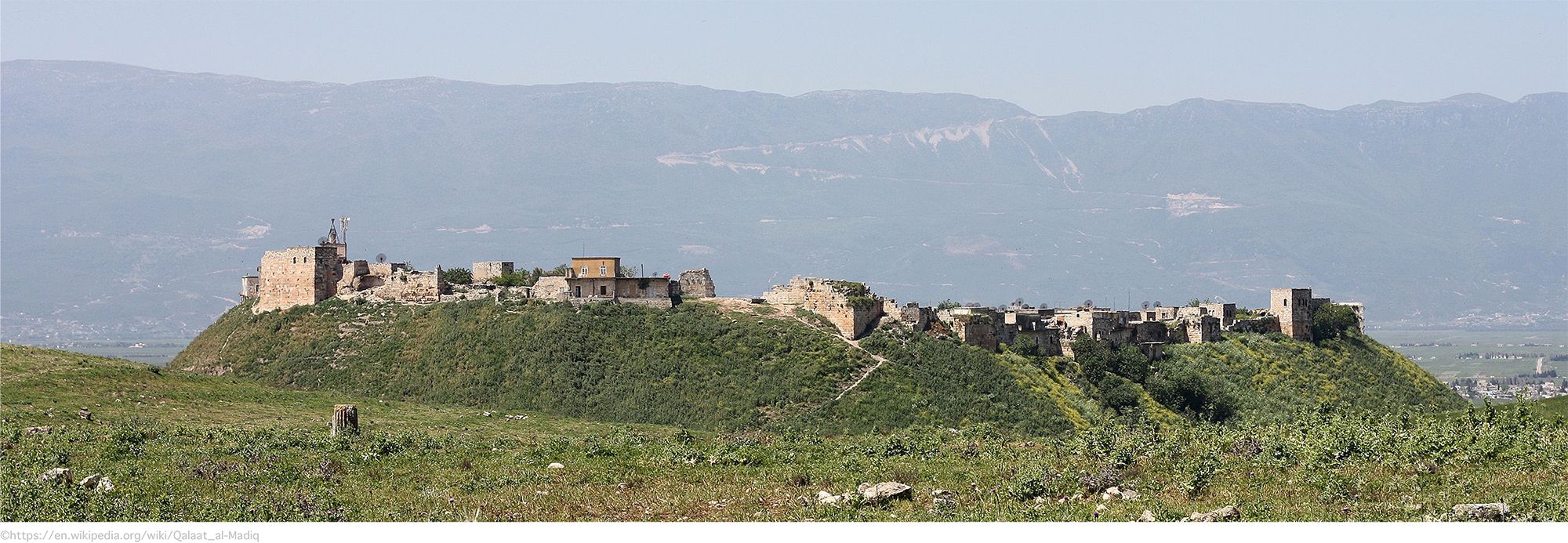أول ما يرى القادم نحو أطلال مدينة أفاميا الأثرية جنوب مدينة حماة السورية ذلك التل الجاثم على يسار الطريق الصاعد إليها، بجلال وروعة، متسامياً يشد الناظر رغم جمال اللوحة الطبيعية الأخّاذة المحيطة به في سهل الغاب، وعلى هذا التل تتربع قلعة المضيق التي تقف حارساً صامتاً على أنقاض مملكة أفاميا القديمة إحدى أعظم المدن اليونانية الرومانية في العالم الكلاسيكي.